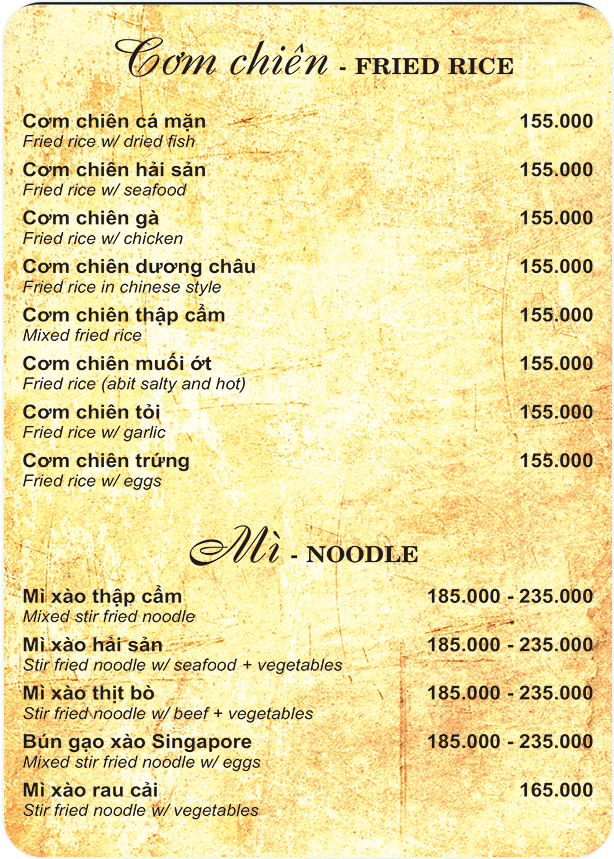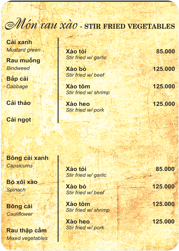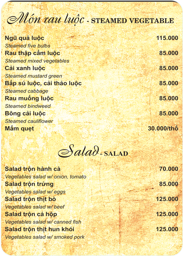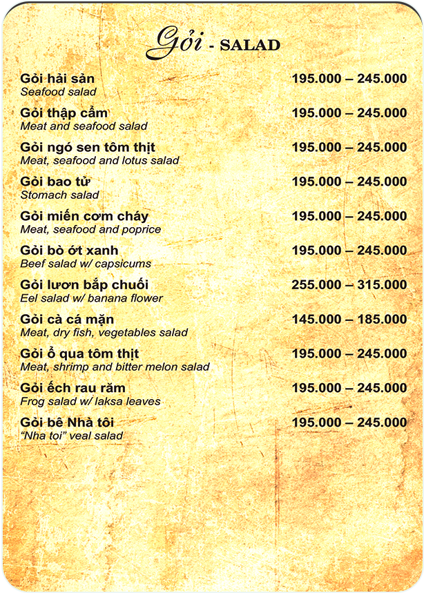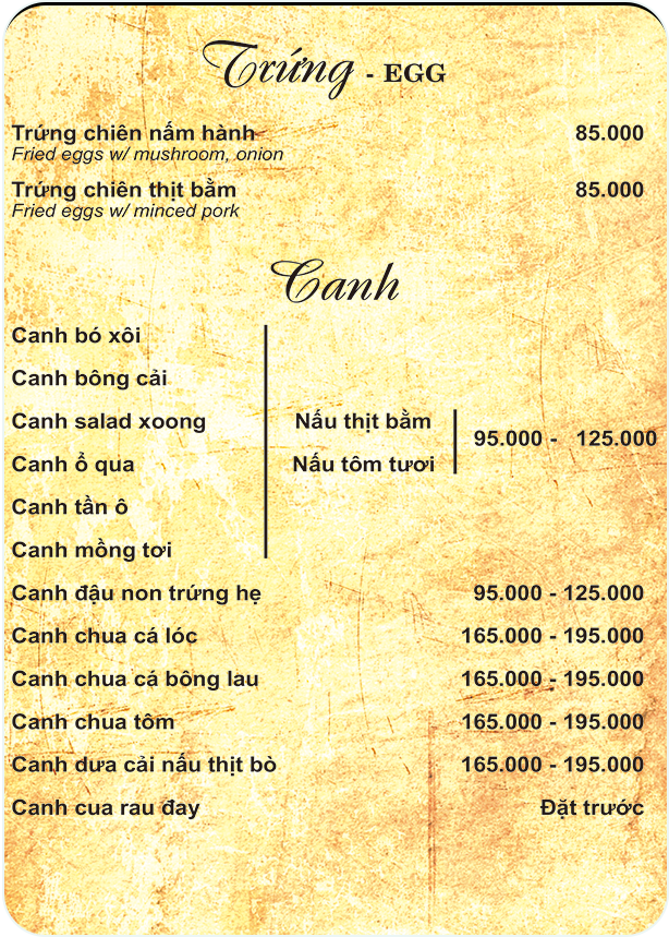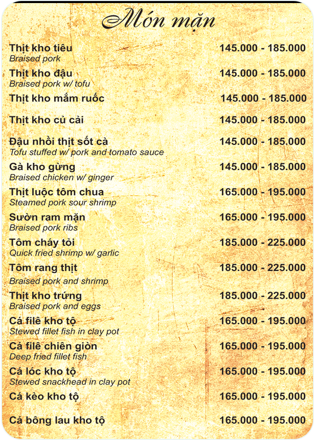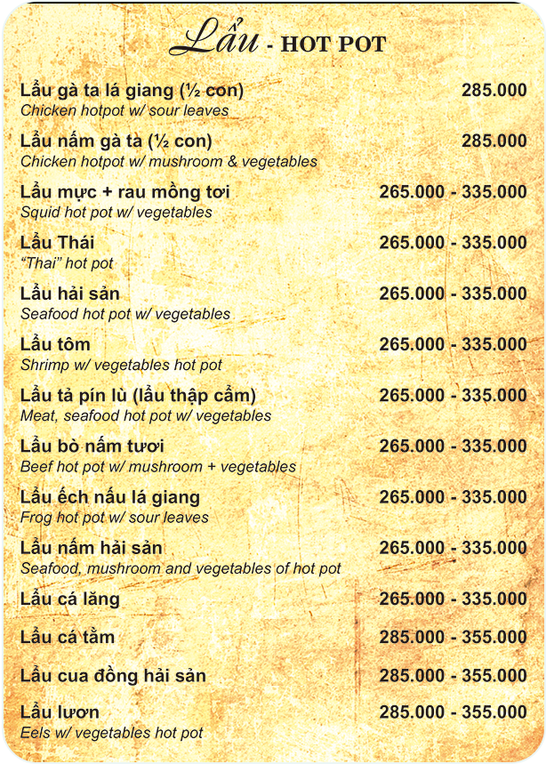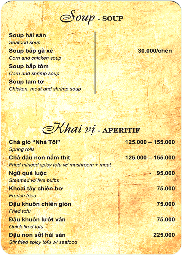 Nhóm khách gia đình ít người (hoặc không thích chọn theo set menu), nhà hàng có thực đơn tự chọn với các món ăn đa dạng, phong phú, chắc chắn sẽ làm hài lòng quý khách !